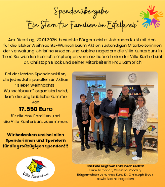 Spendenübergabe an Villa Kunterbunt